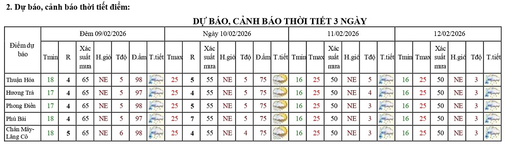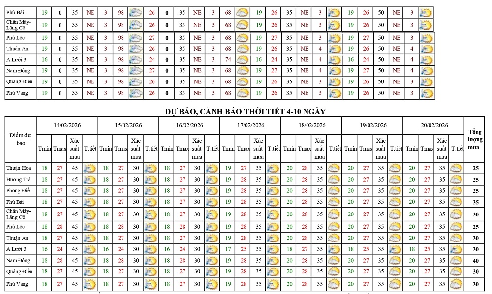 Bản tin dự báo thời tiết ngày 10/02/2026 và 10 ngày tiếp theo
