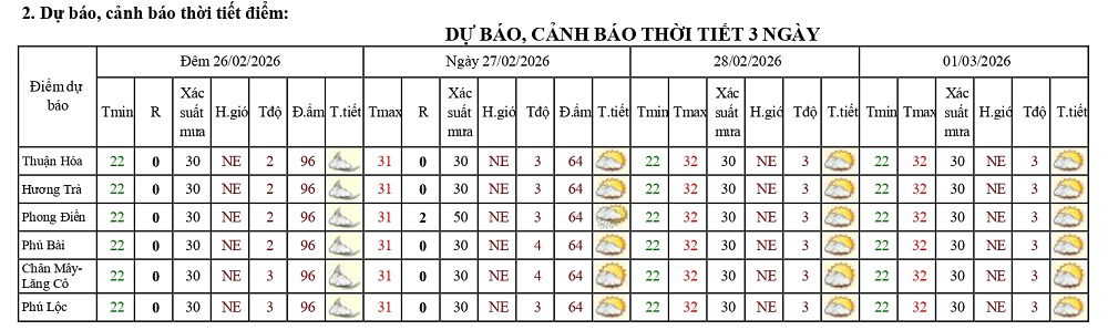 Bản tin dự báo thời tiết ngày 27/02/2026 và 10 ngày tiếp theo