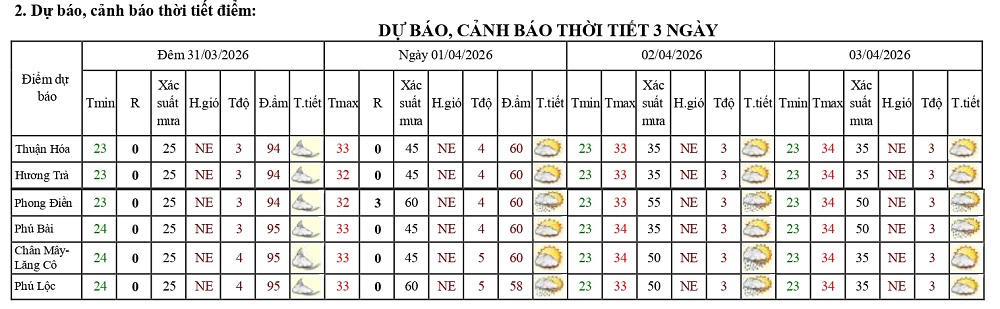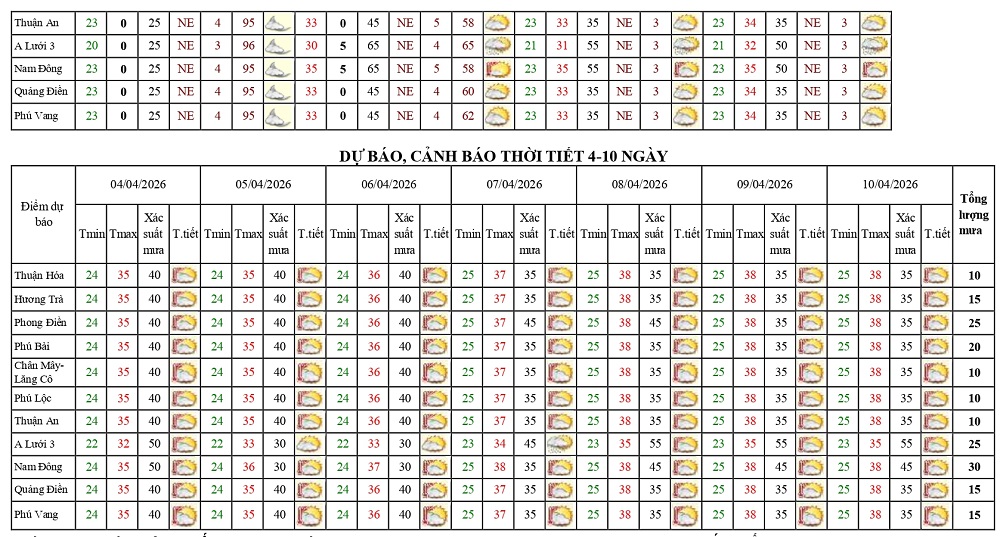 Bản tin dự báo thời tiết ngày 01/4/2026 và 10 ngày tiếp theo