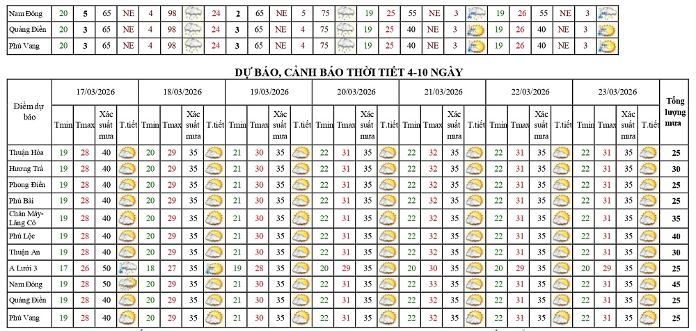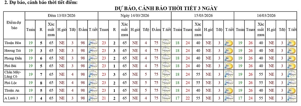 Bản tin dự báo thời tiết ngày 13/3/2026 và 10 ngày tiếp theo