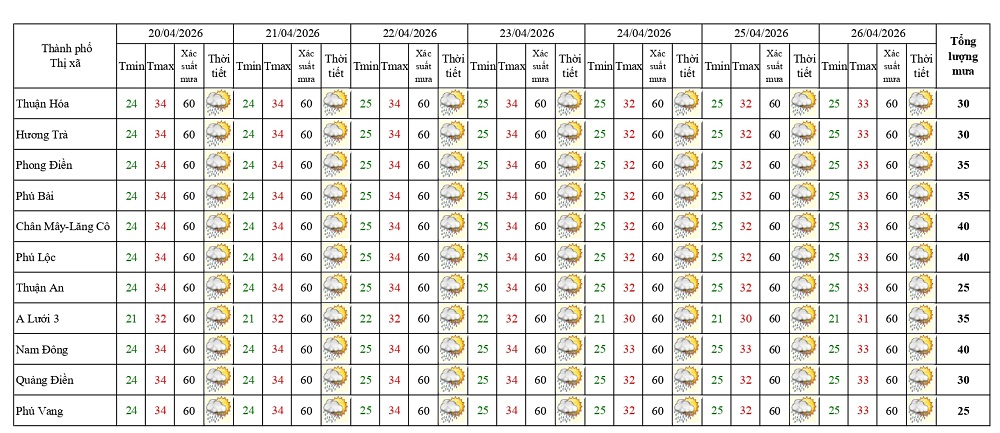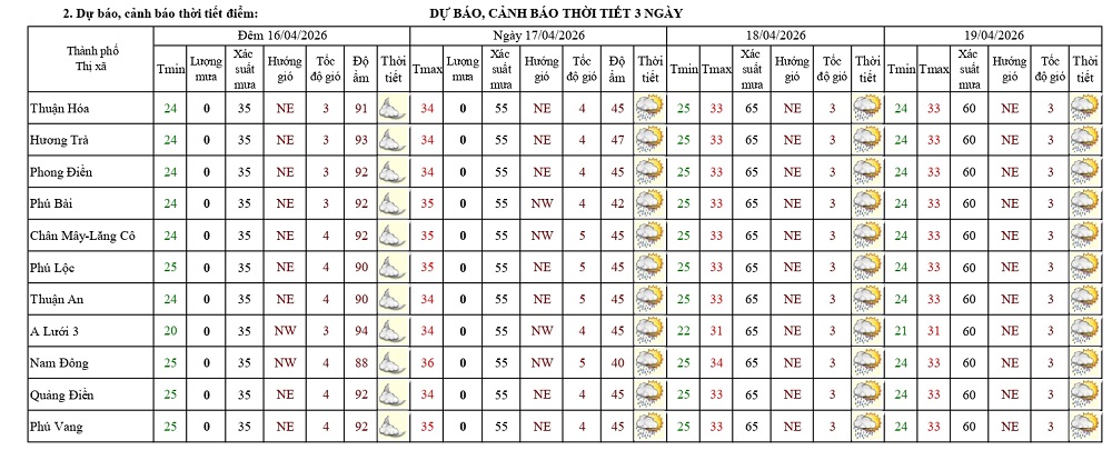 Bản tin dự báo thời tiết ngày 17/4/2026 và 10 ngày tiếp theo
