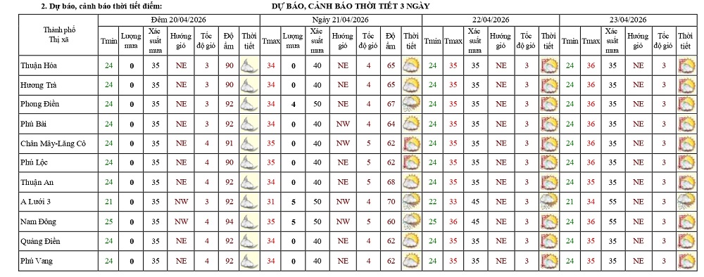 Bản tin dự báo thời tiết ngày 20/4/2026 và 10 ngày tiếp theo