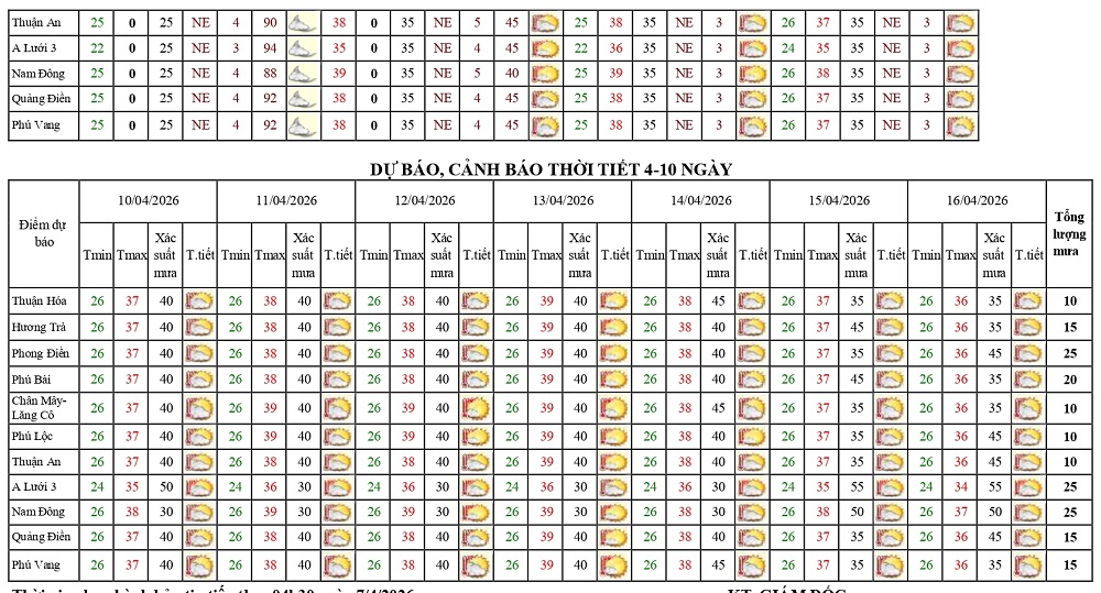 Bản tin dự báo thời tiết ngày 07/4/2026 và 10 ngày tiếp theo