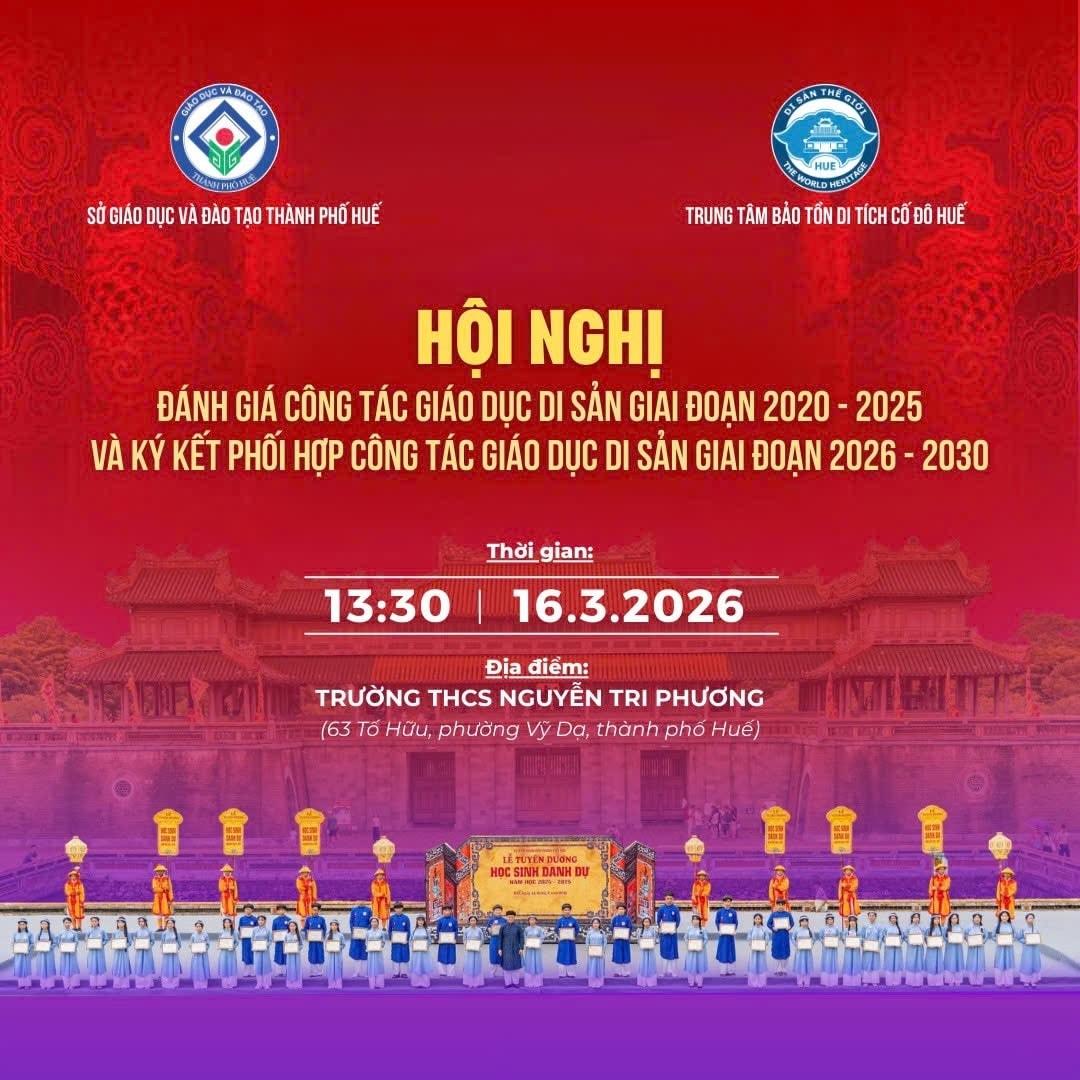 Tổ chức Hội nghị đánh giá công tác giáo dục di sản trên địa bàn thành phố Huế giai đoạn 2020–2025, ký kết chương trình phối hợp công tác giáo dục di sản giai đoạn 2026–2030